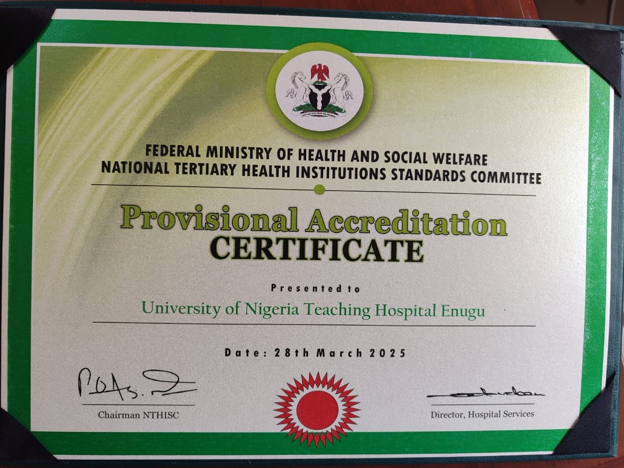 UNTH ACHIEVES PRESTIGIOUS RECOGNITION: AWARDED CERTIFICATE OF COMPLIANCE WITH MINIMUM STANDARDS
